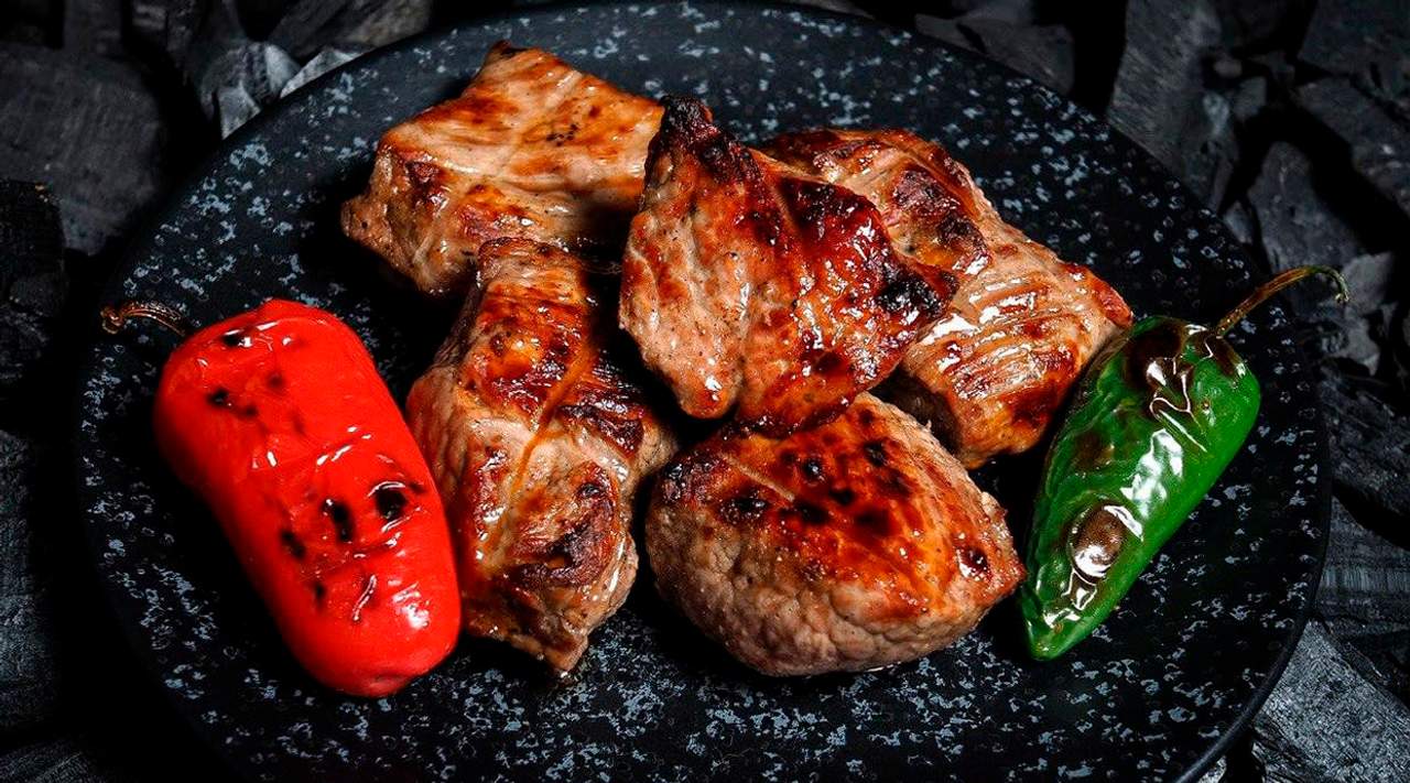 Смажений на деревному вугіллі та мариновані зелень і цибуля