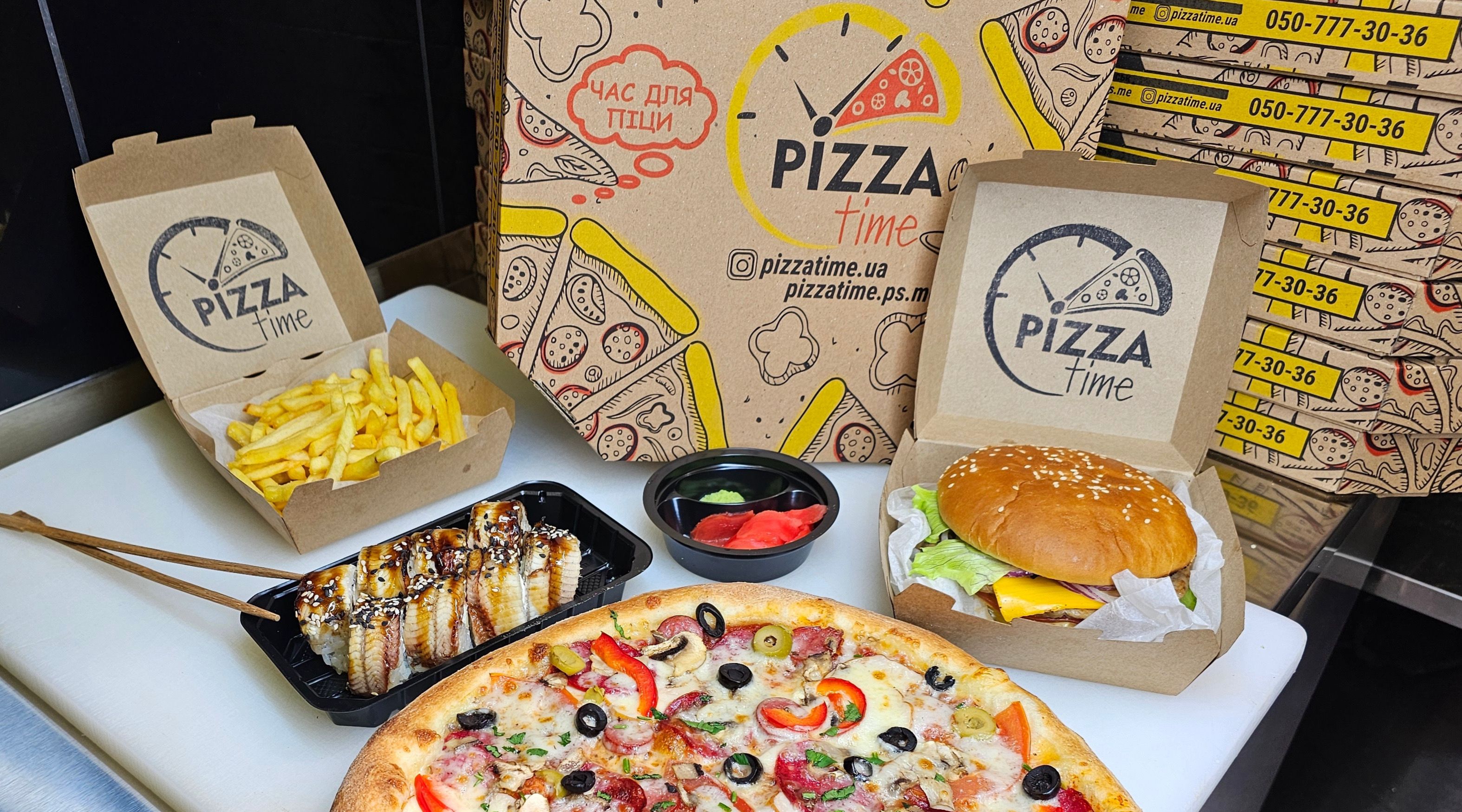 Заклад «Pizza Time» пропонує великий асортимент товарів, які ви можете замовити будь-коли. Ознайомтеся з каталогом товарів, які заклад «Pizza Time» пропонує своїм клієнтам, та оберіть ті з них, які хотілося б замовити.