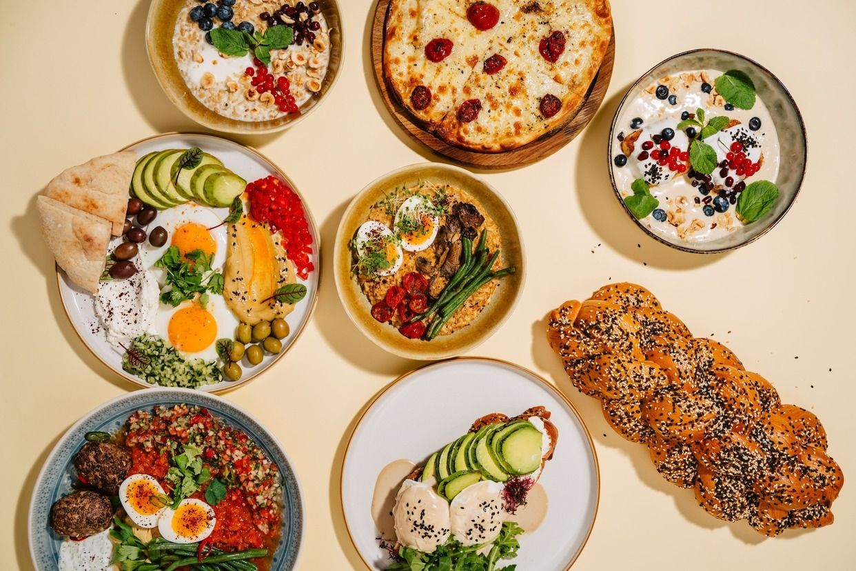 Пряна томатна шакшука з двома яйцями на вибір, соковитим кебабом, хрусткою спаржевою квасолею, кремовим хумусом, салатом табуле, соусом дзадзікі, пітою, петрушкою, кінзою та мікрозеленью. Ситний сніданок з ближньосхідним вогником!