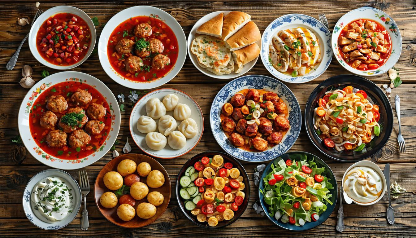 (капуста, цибуля, морква, печериці, перець салатний, спеції, томатна паста, копчений черевичок, філе куряче)