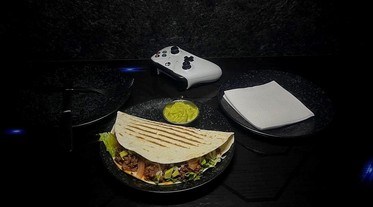 250г.Кукурудзяні коржі, начинені м'ясною начинкою (яловичий фарш, цибуля ріпчаста, часник), а також нарізаними помідорами, авокадо і натертим сиром. Подається зі сметаною