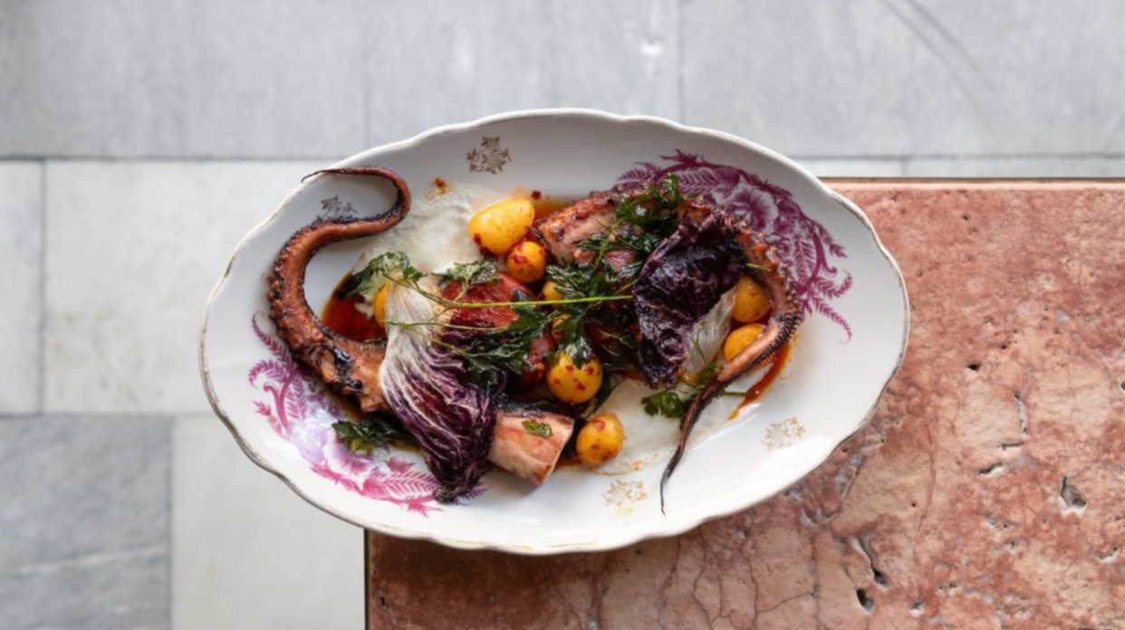 Обсмажена на відкритому вогні, подається з вершковим деміглясом, ніжним пюре, свіжими нотами мандарина та ароматними квітами чебрецю.