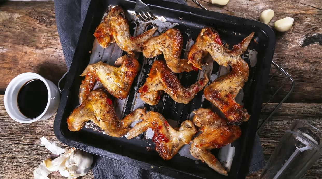 Курячі крила су-від, гірчиця "Американська", гірчиця "Діжонська", мед, кунжут, спеції.