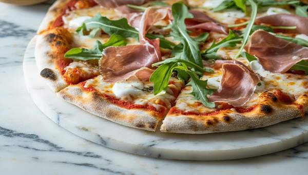Томатний соус, ростбіф, крафтова Моцарела, гриби Печериці, томати Чері, сушені томати, рукола, Часникова олія